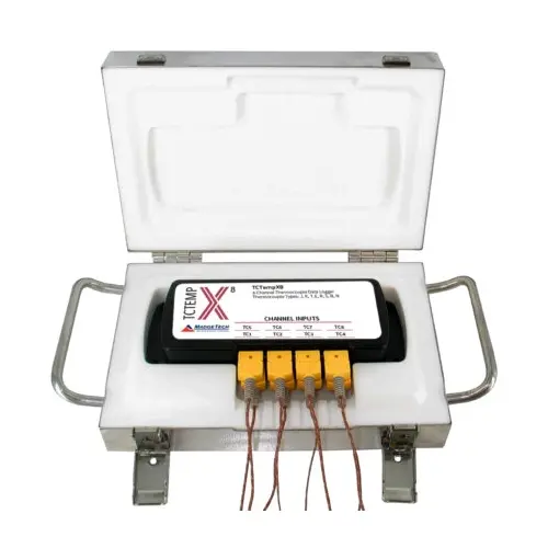 Encapsulamiento en acero inoxidable diseñado para protección térmica de registradores multicanal, permitiéndoles exponer el cuerpo del registrador hasta los 350ºC por 25 minutos.